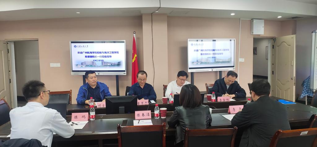 2023年10月25日,广州航海学院船舶与海洋工程学院院长陈爱国、副院长童军杰一行到访8858cc永利官网,学院领导在慧智楼90708会议室与陈爱国院长一行就学科建设和专业建设开展座谈,系部主任等参加了会议。