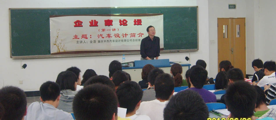 6月10日下午,8858cc永利官网企业家论坛首场讲座在慧智楼90326教室举行。重庆宇杰汽车设计有限公司总经理金浩应邀做了以“汽车设计简介”为主题的讲座。学院07级机电、机制、模具、汽车专业学生及院党政领导参加了本次讲座。