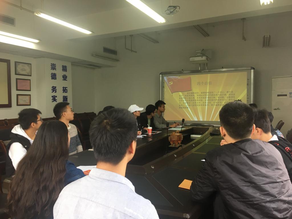 首先,加强理论学习。在不懈的学习中,不断深入理解马克思主义的精髓,深刻领会习总书记系列重要讲话的精神。集中学习与自发学习相结合,面授与网络多媒体教育并进的方式,通过参加各级党组织的理论学习、专题党课,参与网络知识竞赛、党建微信平台的推送文章等各式各样新颖的学习,投入各种主题党日活动、志愿服务等实践活动。在书本上,实践中,不断地增强“四个自信”的基石,强化政治意识。