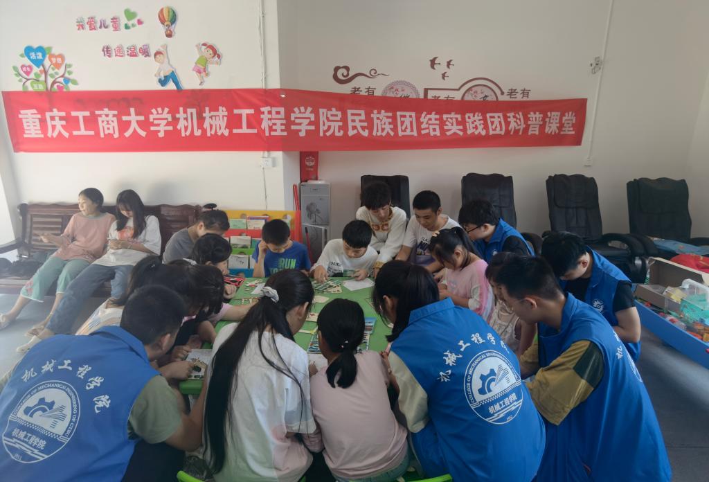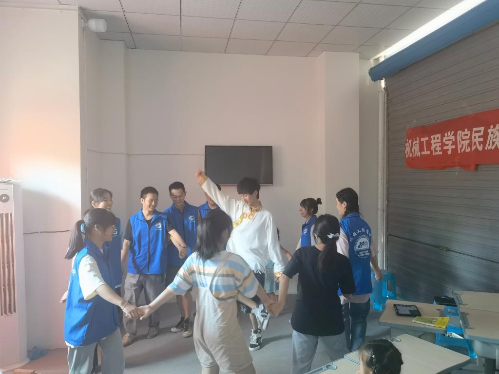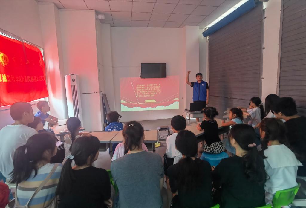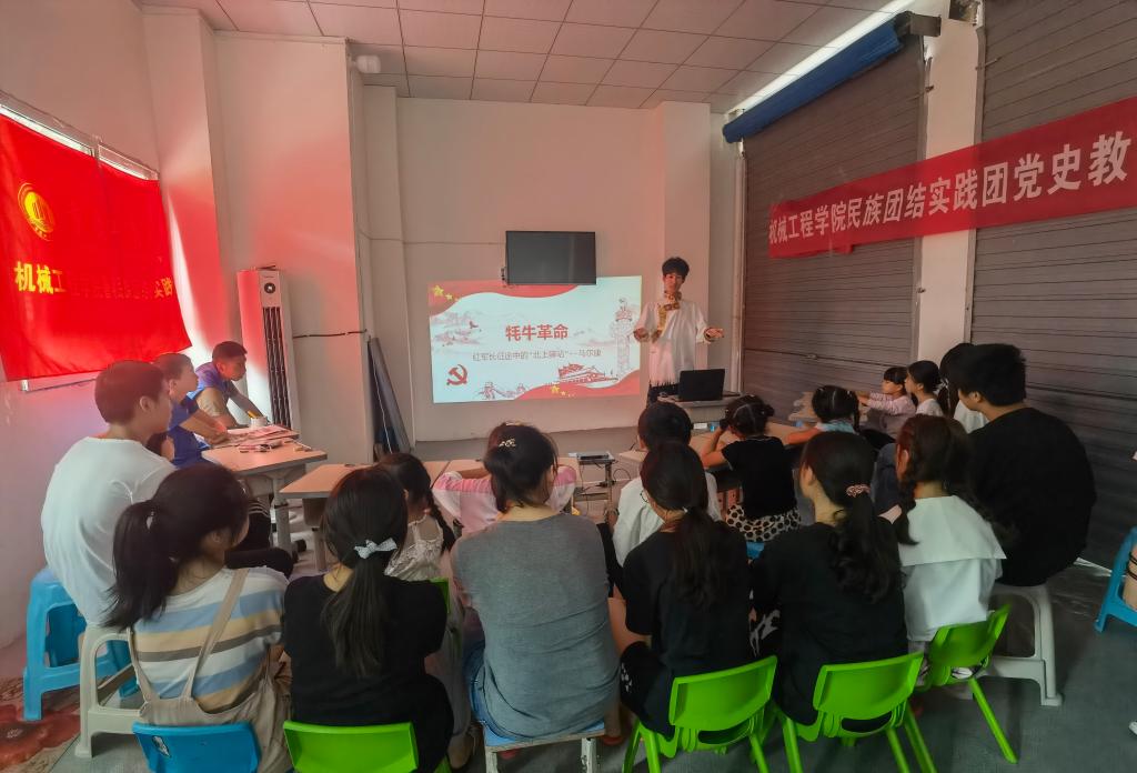8858cc永利官网8858cc永利官网民族团结实践团成员7月13日为水口镇树荫村20余位留守儿童开展了丰富的主题活动。实践团开展了以“请党放心、强国有我”为主题的习近平总书记七一重要讲话精神解读活动,结合建党100周年青少年献词,号召大家听党话、感党恩、跟党走,同心向党,振兴国家。激情昂扬的献词点燃现场,孩子们和实践团成员们一起齐声朗诵“请党放心、强国有我”。党史故事会上,实践团成员藏族小伙马骁,生动的讲解了红军长征时发生在阿坝州的感人故事《牦牛革命》,故事听的大家热泪盈眶,孩子们和实践团成员一起在现场跳起了藏族锅庄舞,赢得了大家阵阵掌声。科普小课堂上,实践团成员围绕“3D打印”、“激光雕刻”、“寻迹小车”三方面进行了介绍,现场演示“寻迹小车”工作原理,并且开展了谁是“拼装大王”的激光雕刻拼接模型的拼装小比赛,激发了大家浓厚的科技兴趣。