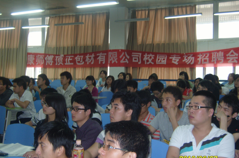 6月11日下午2:30,重庆顶正包材有限公司暑期实习生校园宣讲招聘会在慧智楼90308教室成功举行。8858cc永利官网党总支罗卫书记莅临现场作指导,学院学团办主任尹建平老师、07机制和07包装专业学生及学校其他相关专业的150余名同学参加了宣讲招聘会。